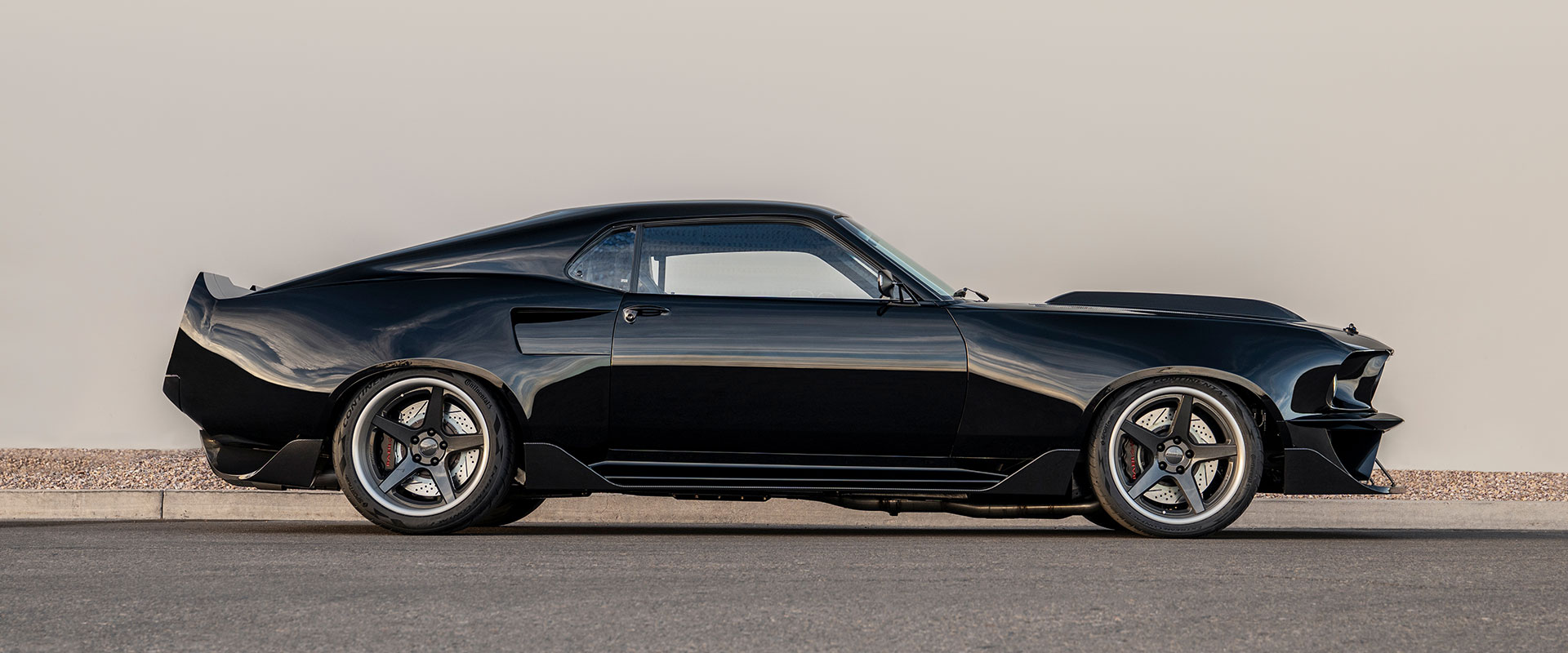 Our carbon fiber 1969 Mustang Widebody boasts an exquisite design, blending sleek lines, bold curves, and a commanding presence that captivates the senses.